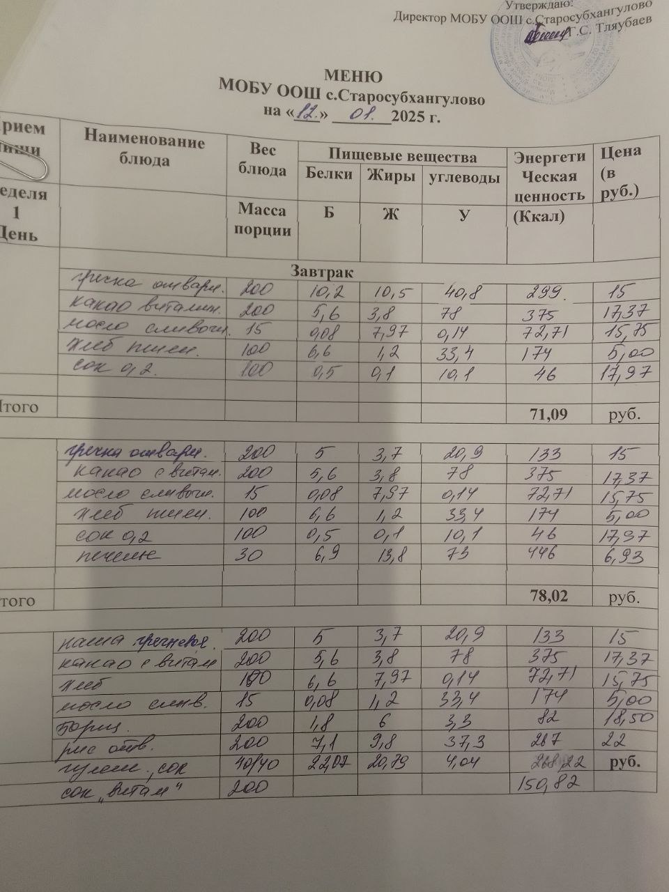 (завтрак 1-4 класс на 12.01.2026)